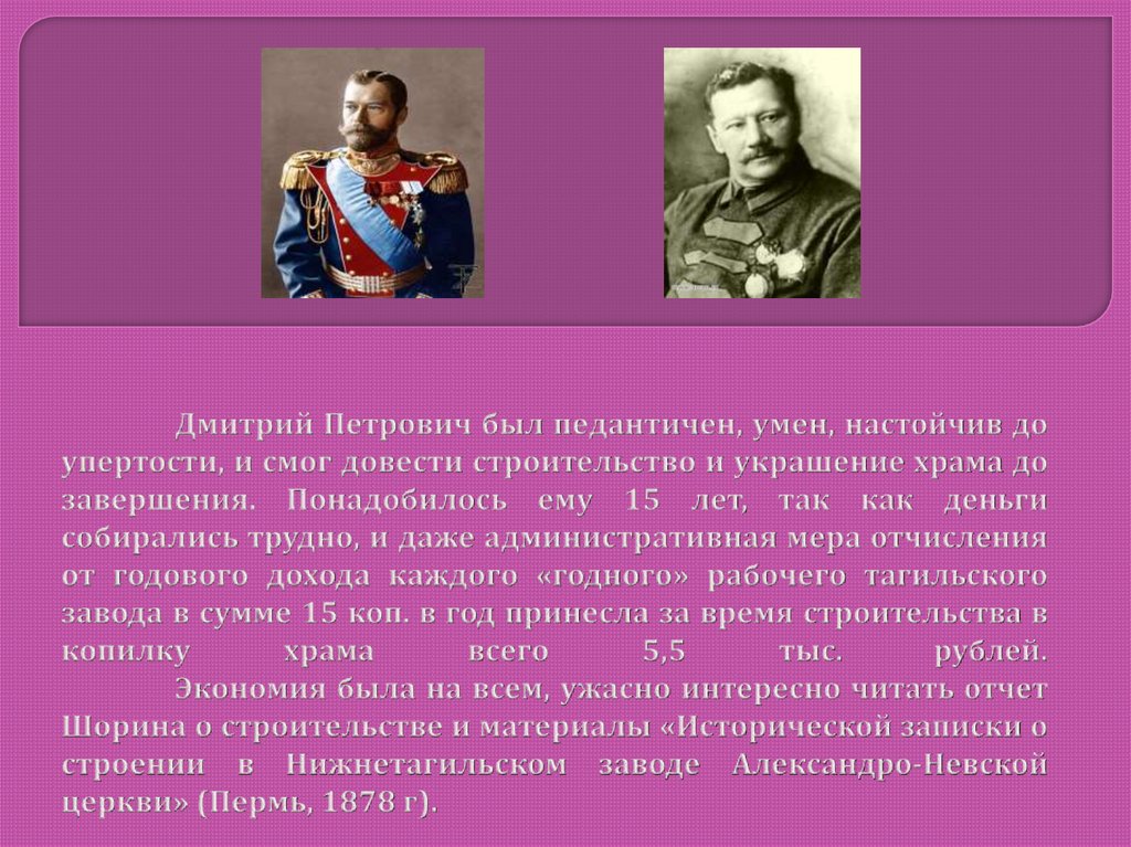 заводского архитектора и «прораба» нового храма. С одной стороны,