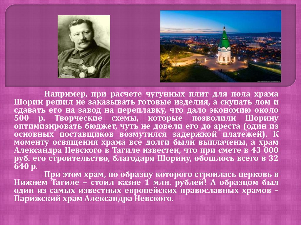 Александра Невского в Тагиле известен, что при смете в 43 000