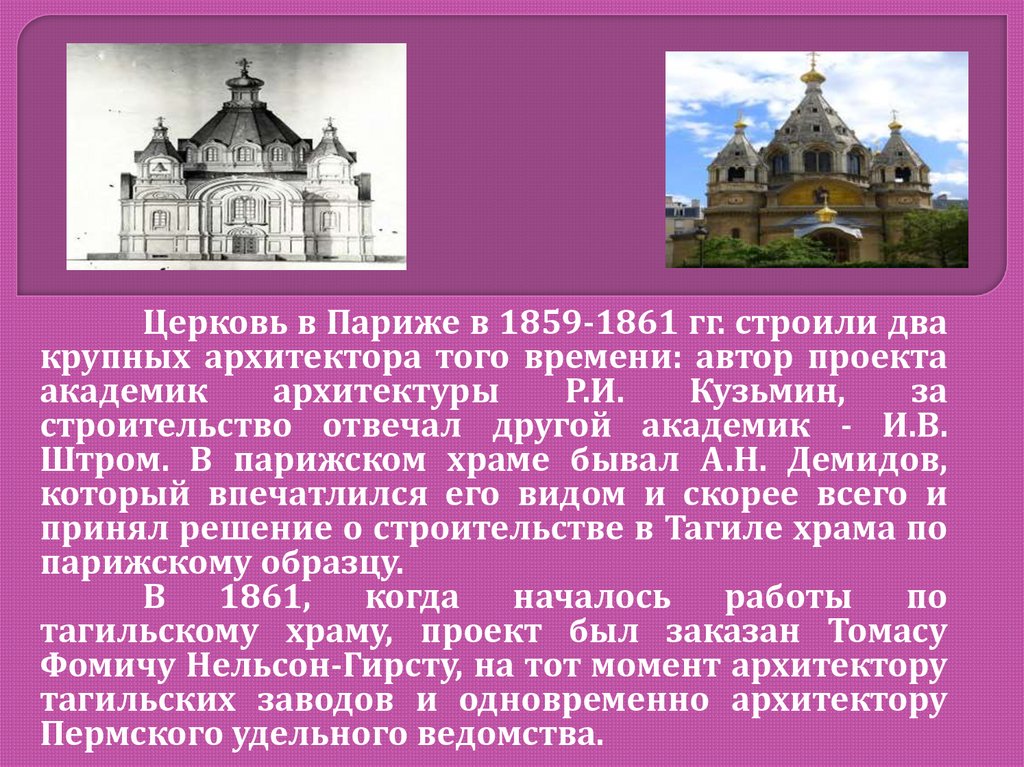 Церковь в Париже в 1859-1861 гг. строили двакрупных архитектора того времени: автор проекта