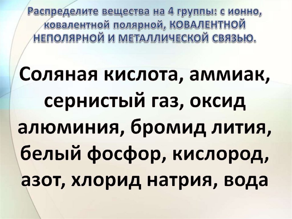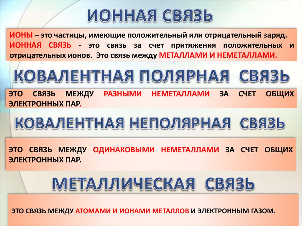 отрицательных ионов. Это связь между МЕТАЛЛАМИ И НЕМЕТАЛЛАМИ.