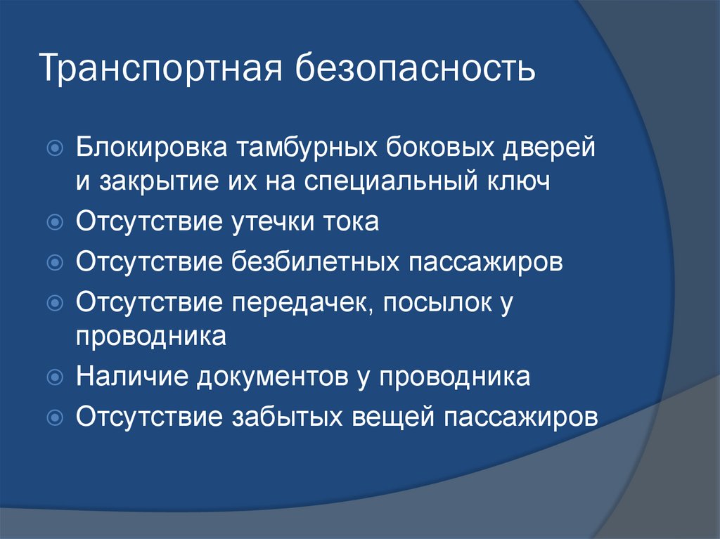 Транспортная безопасностьБлокировка тамбурных боковых дверей
