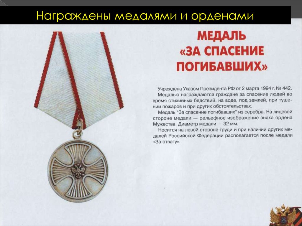 Награждены медалями и орденами16.