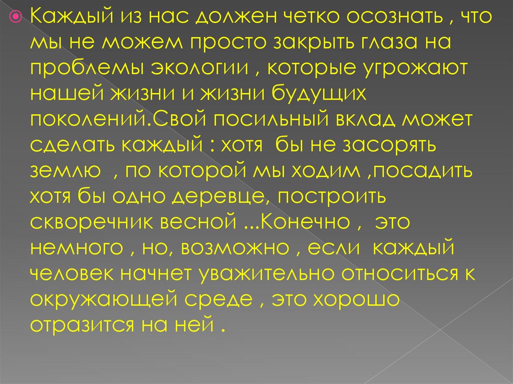 Каждый из нас должен четко осознать , чтомы не можем просто закрыть глаза на