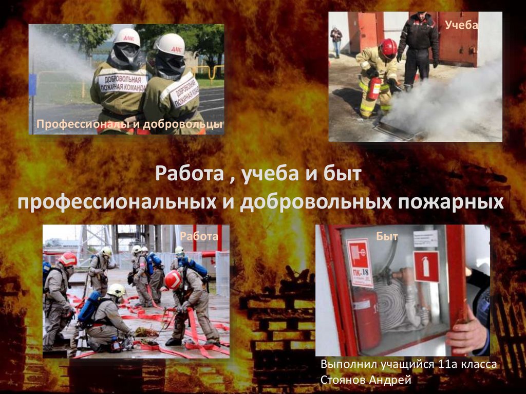 Работа, учеба и быт профессиональных и добровольных пожарных