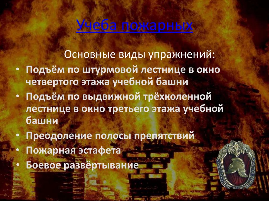 Учеба пожарныхОсновные виды упражнений: