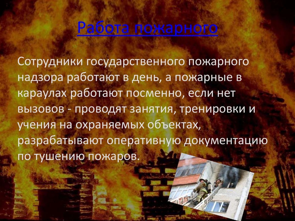 Работа пожарногоСотрудники государственного пожарного