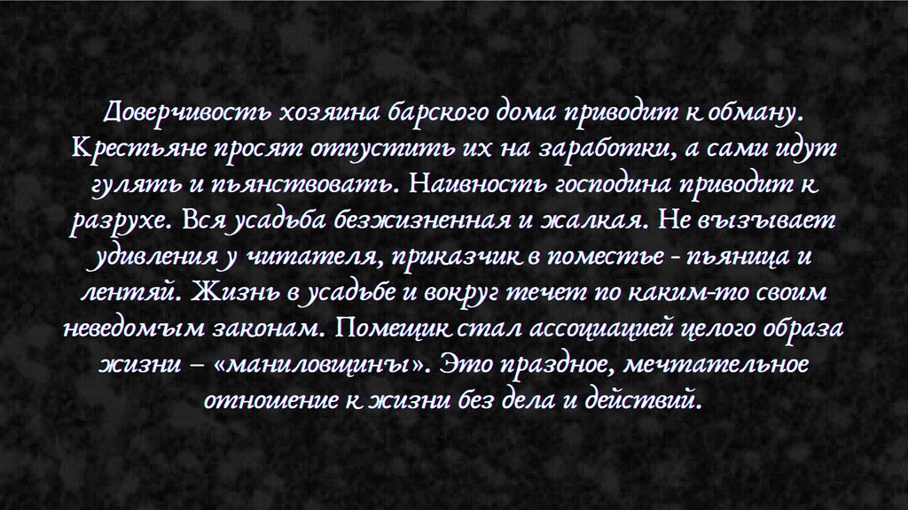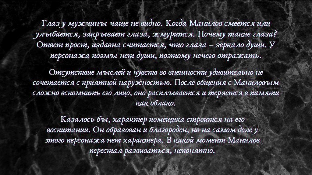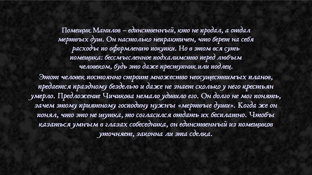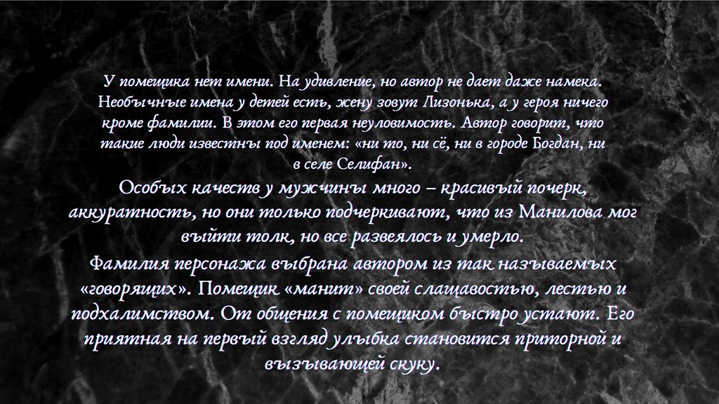 Помещик с приятной фамилией Манилов – непожилой мужчина, как говорит автор «средних