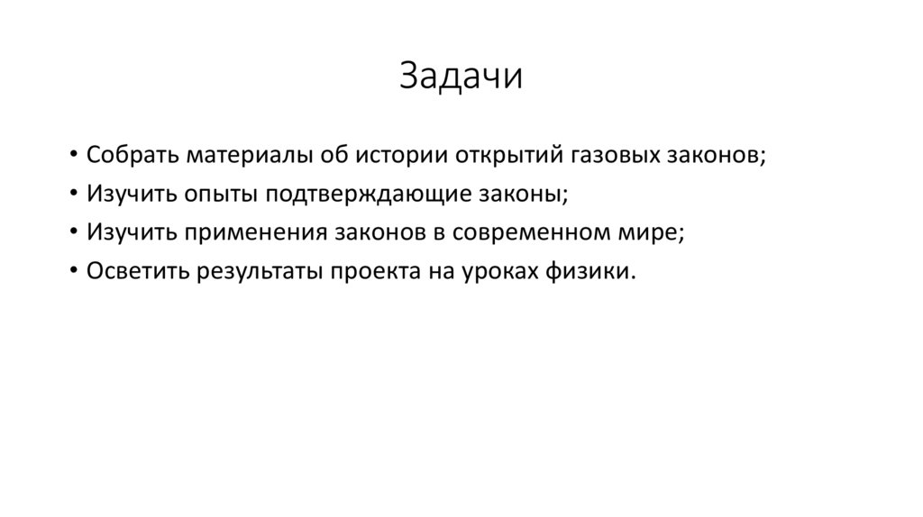 Задачи• Собрать материалы об истории открытий газовых законов;