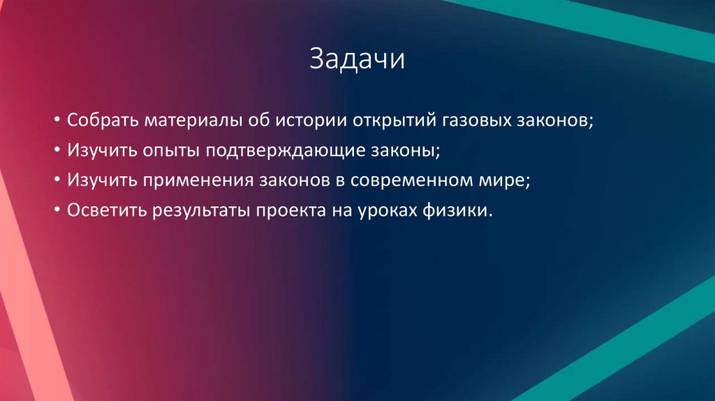 Задачи• Собрать материалы об истории открытий газовых законов;