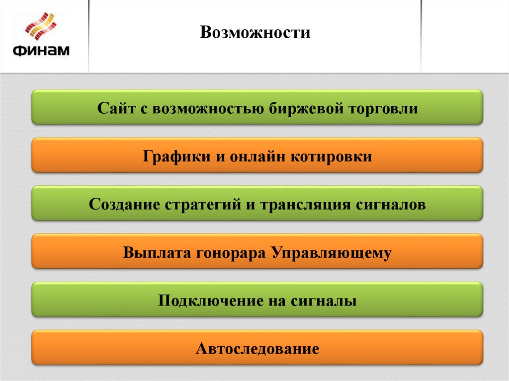 ВозможностиСайт с возможностью биржевой торговли