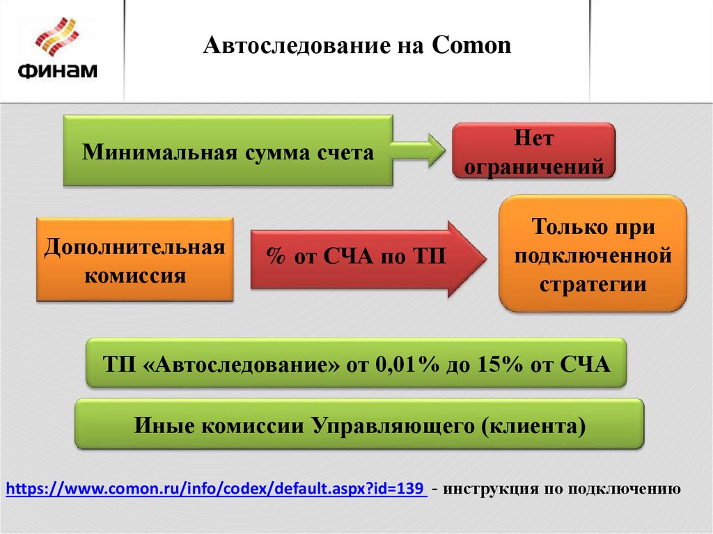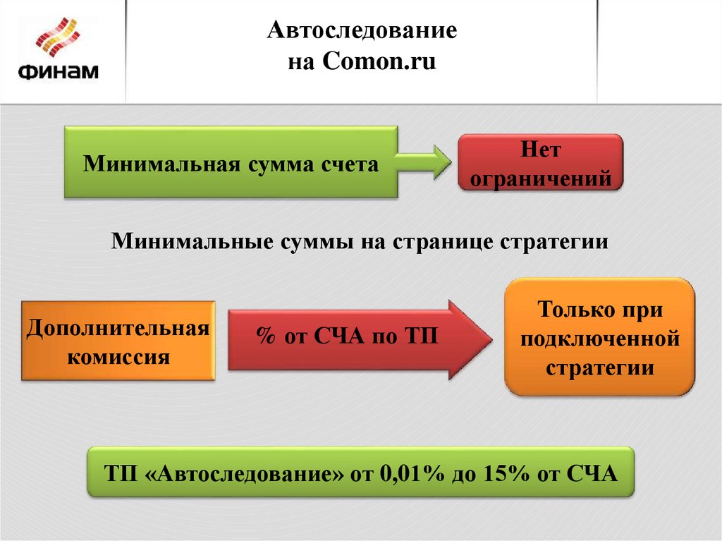 Автоследование на ComonМинимальная сумма счета