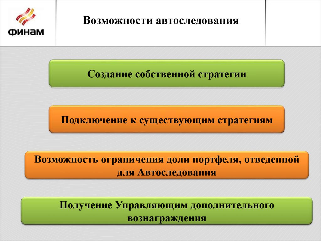 Возможности автоследованияСоздание собственной стратегии