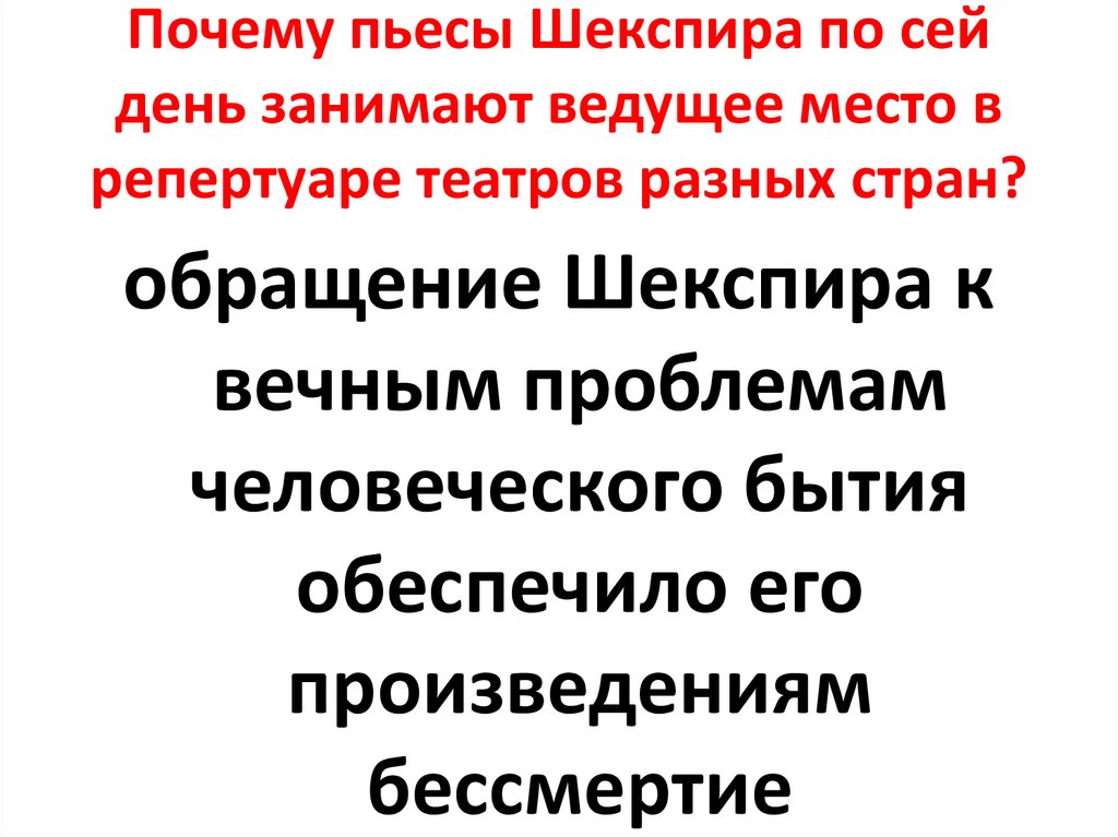 Почему пьесы Шекспира по сейдень занимают ведущее место в