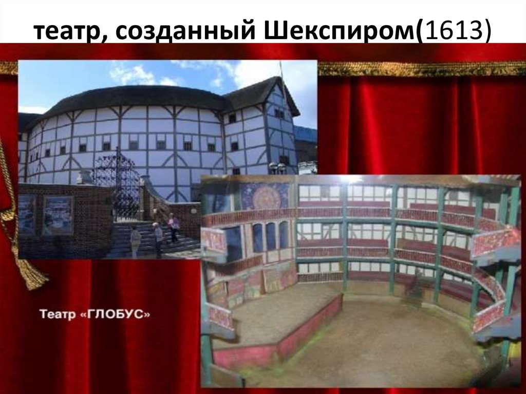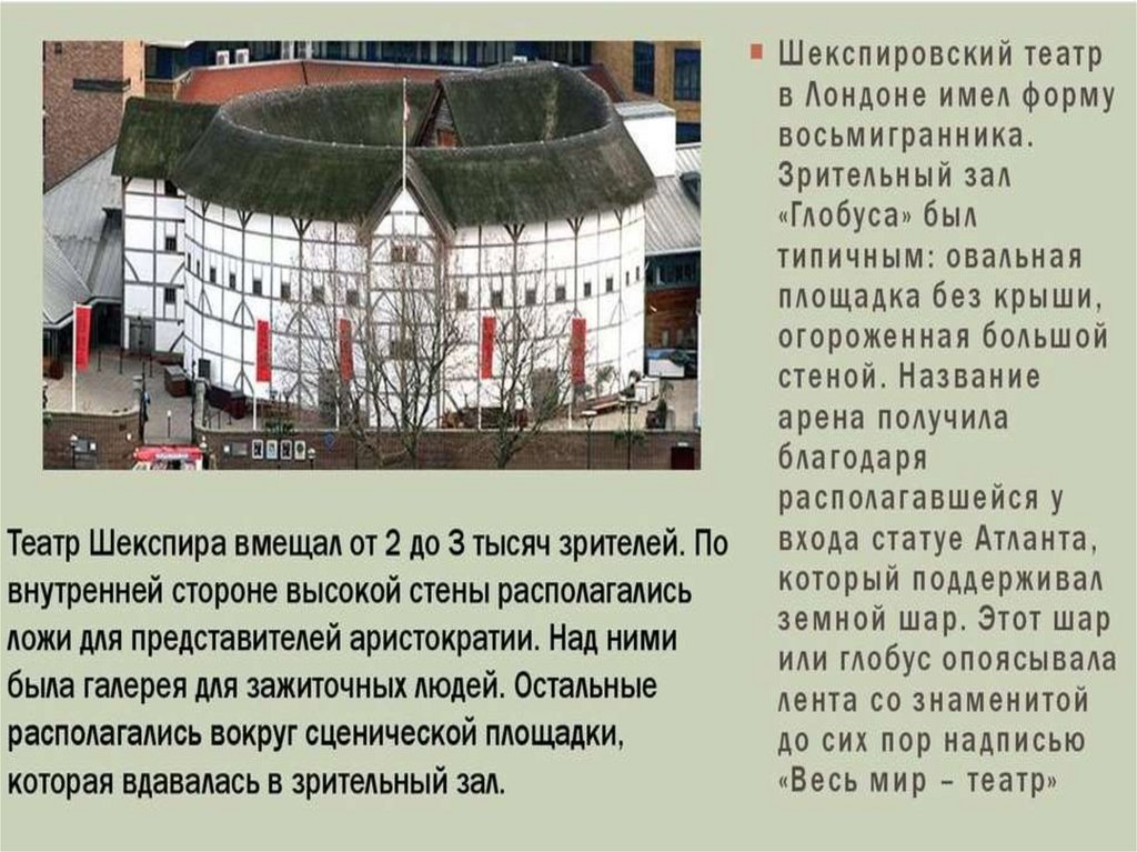 Над входными воротами театр Шекспира,возвышалась статуя Геркулеса,