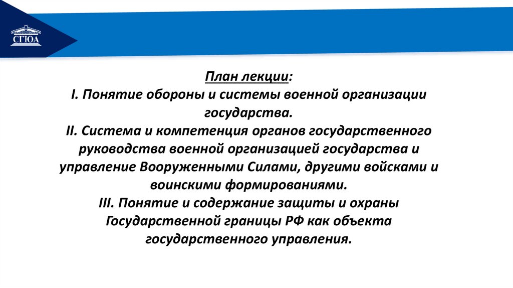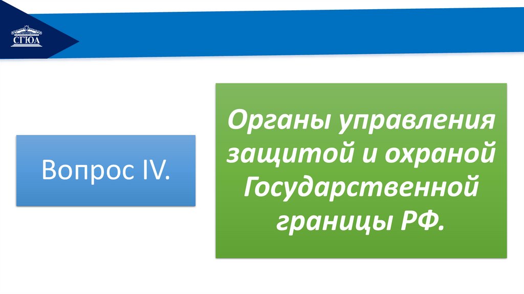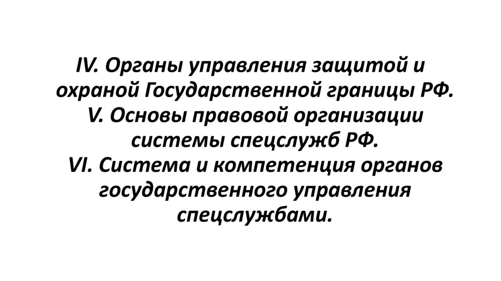 IV. Органы управления защитой иохраной Государственной границы РФ.