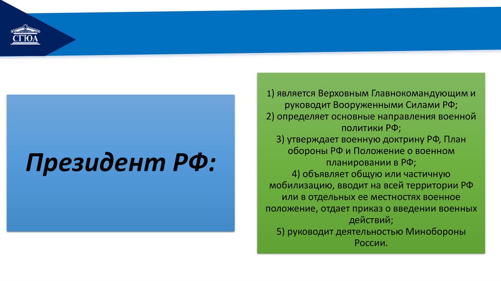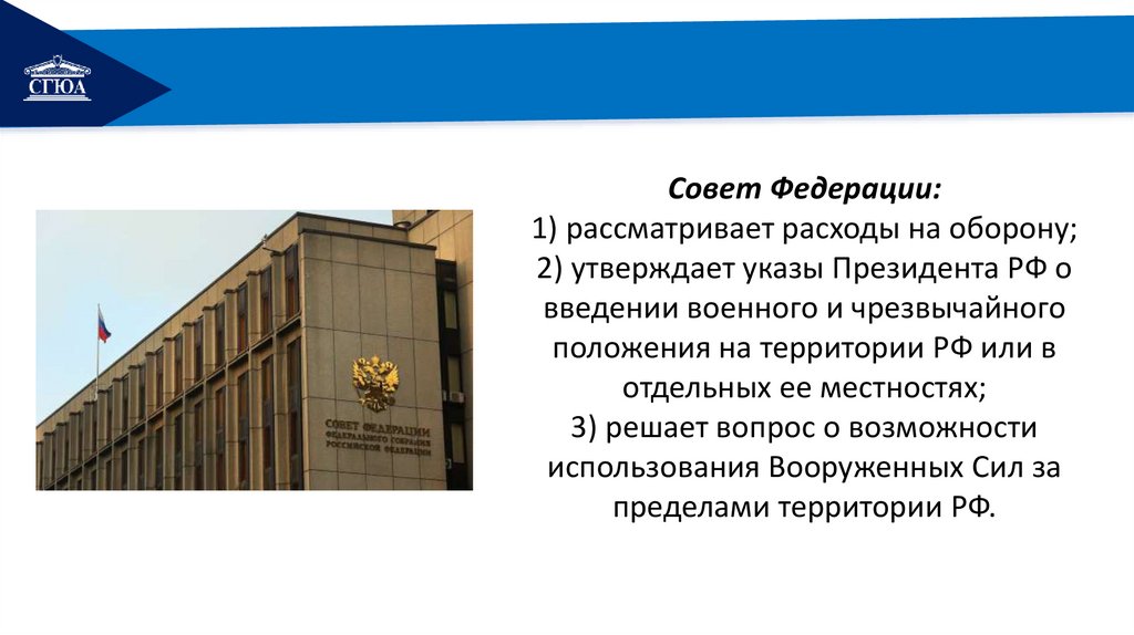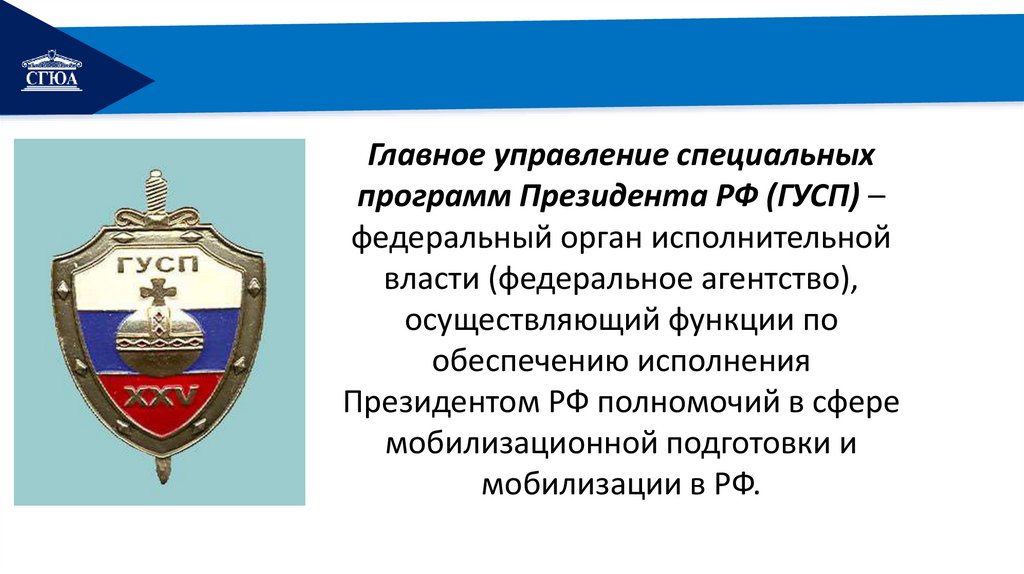 1) обеспечения Президента РФ, Федерального Собрания РФ и