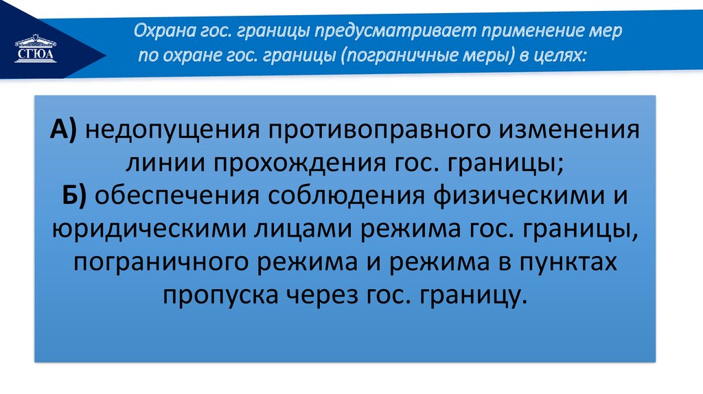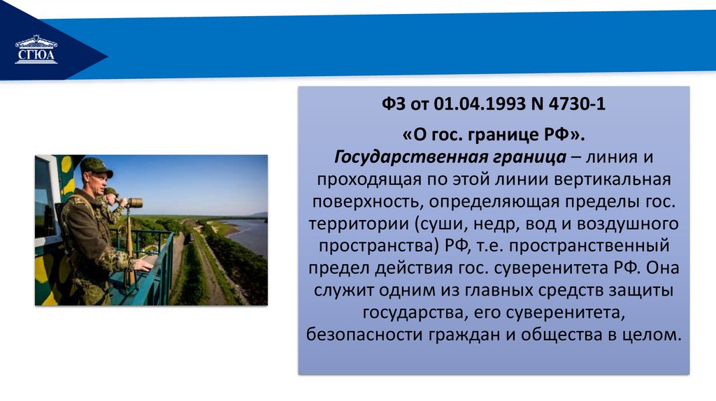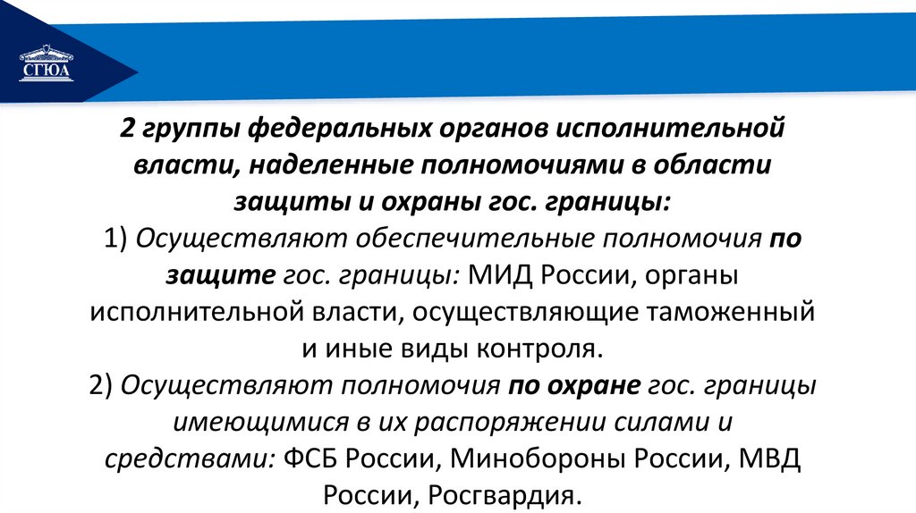 1) защита и охрана Государственной границы РФ, внутренних морских