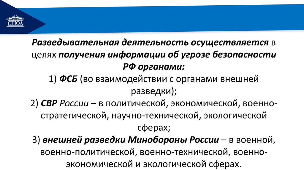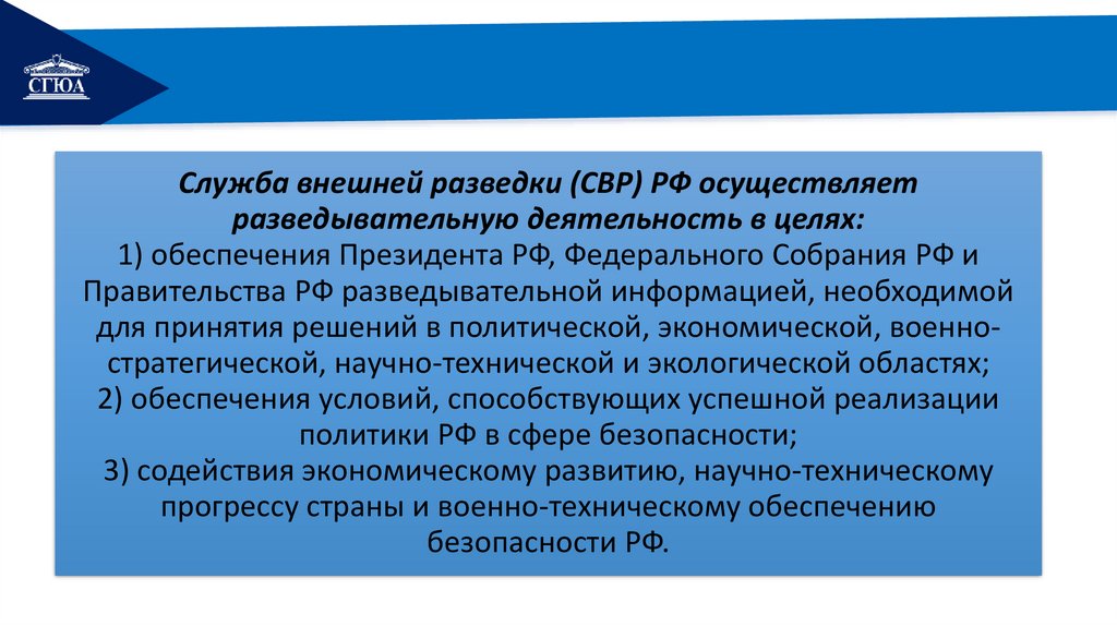 2) СВР России – в политической, экономической, военностратегической, научно-технической, экологической
