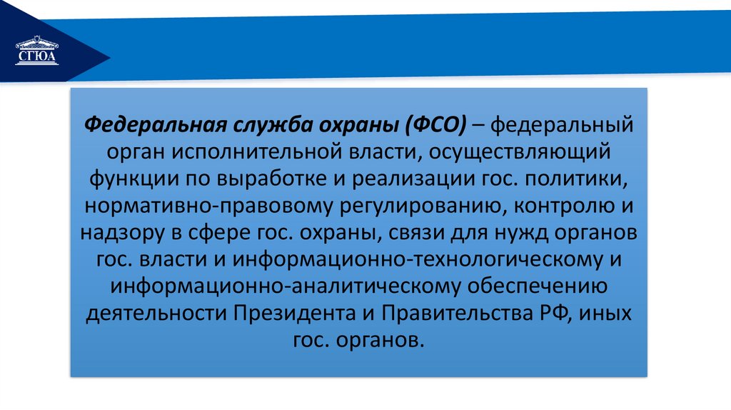 РЕМОНТФедеральная служба охраны (ФСО) – федеральный