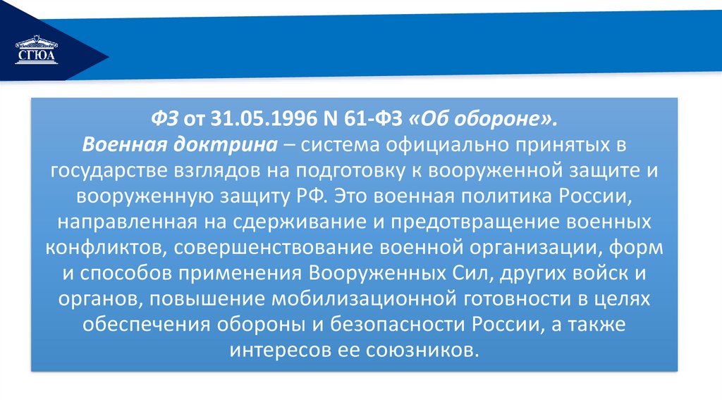 РЕМОНТФЗ от 31.05.1996 N 61-ФЗ «Об обороне».