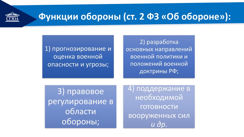 РЕМОНТФункции обороны (ст. 2 ФЗ «Об обороне»):