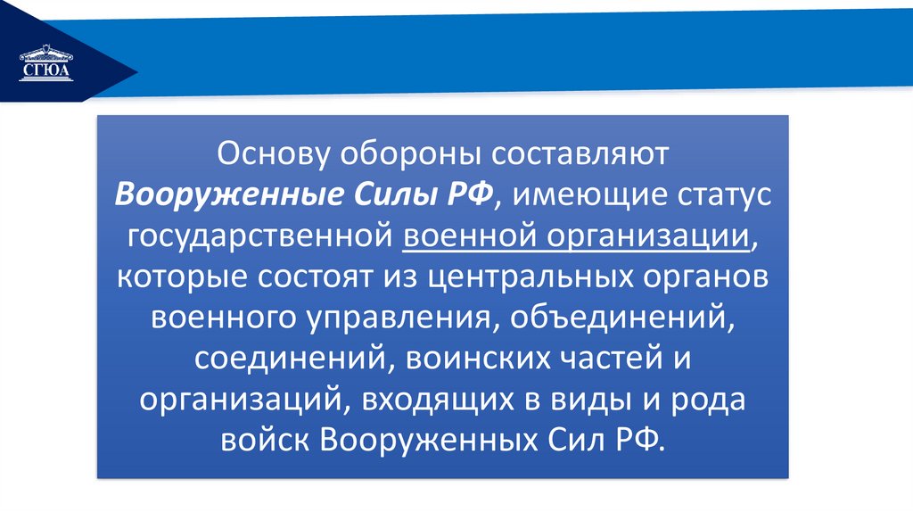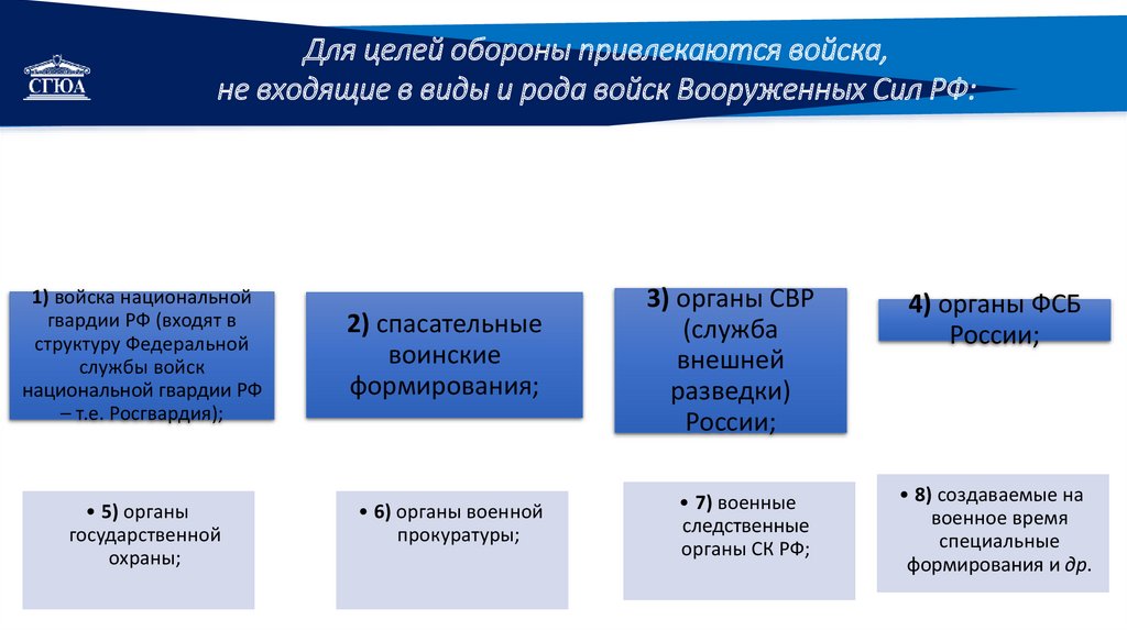 не входящие в виды и рода войск Вооруженных Сил РФ: