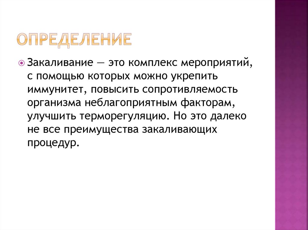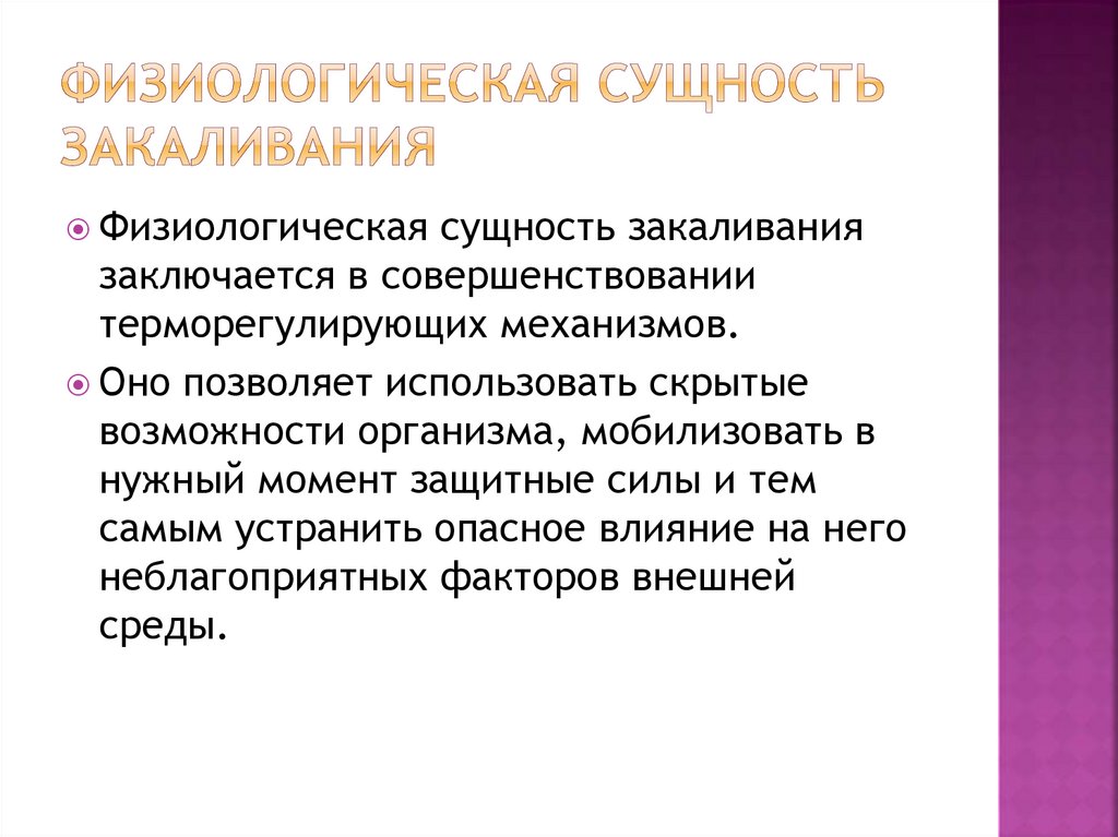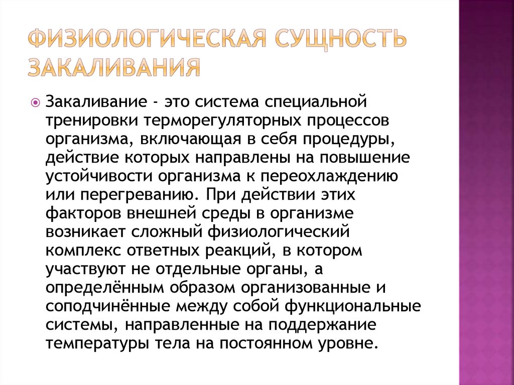 Закаливание - это система специальнойтренировки терморегуляторных процессов