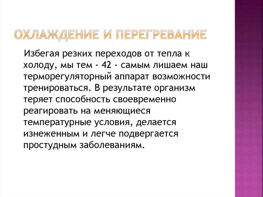 Избегая резких переходов от тепла кхолоду, мы тем - 42 - самым лишаем наш
