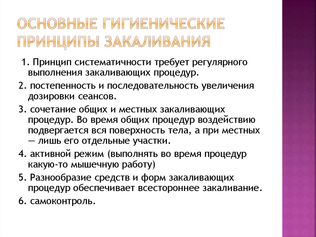 1. Принцип систематичности требует регулярноговыполнения закаливающих процедур.