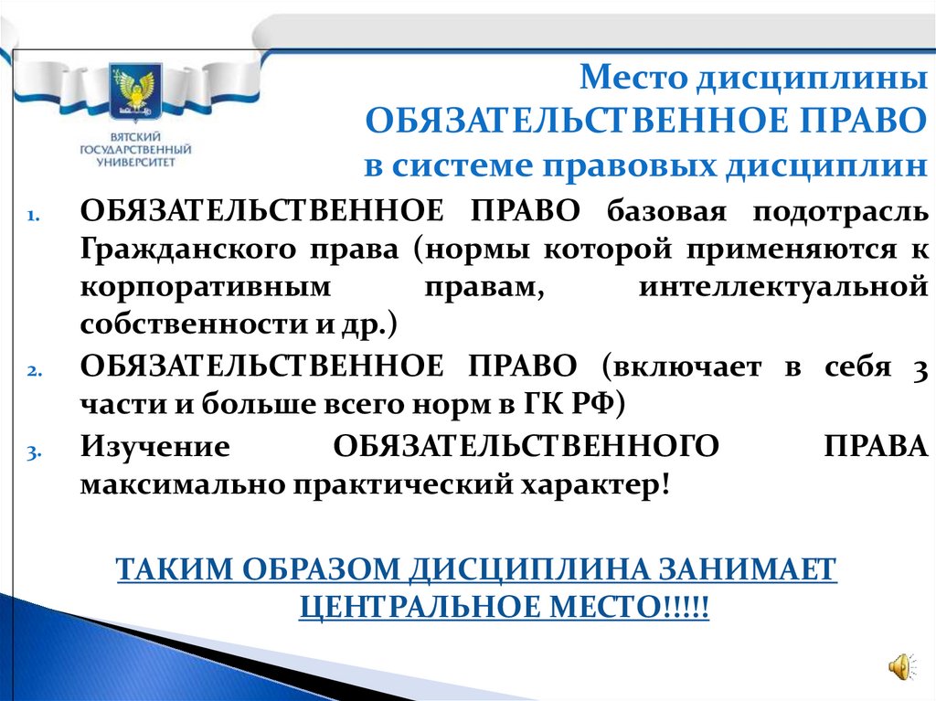 Место дисциплиныОБЯЗАТЕЛЬСТВЕННОЕ ПРАВО