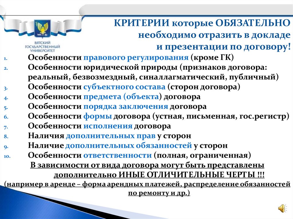 КРИТЕРИИ которые ОБЯЗАТЕЛЬНОнеобходимо отразить в докладе