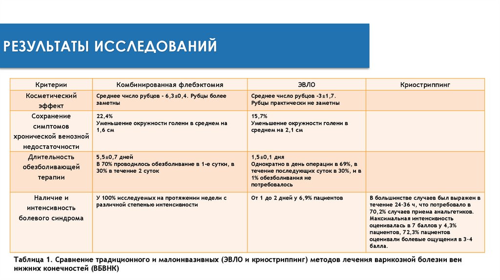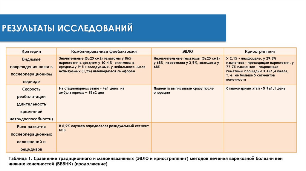 Источник: Париков М. А., Давыденко В. В., Галилеева А. Н., Мордовин А. И. Сравнительный анализ результатов лечения варикозной болезни вен нижних