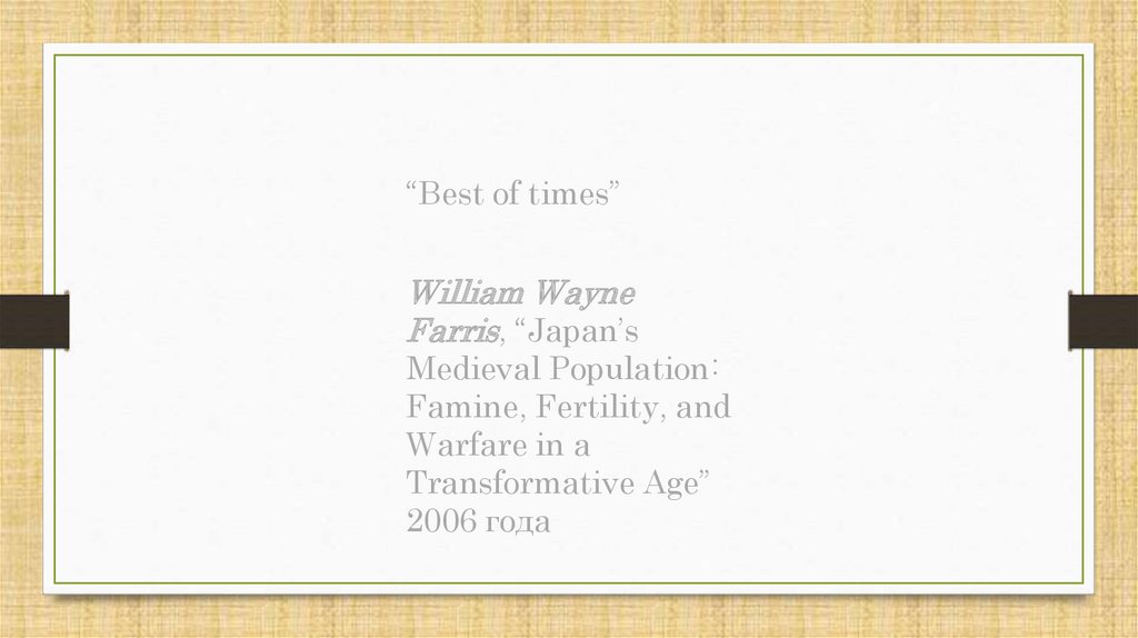 «Лучшие времена»Уильям Уэйн Фаррис,