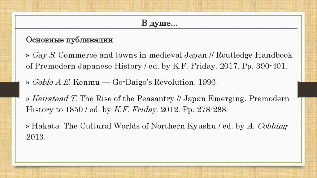 » Gay S. Commerce and towns in medieval Japan // Routledge Handbook