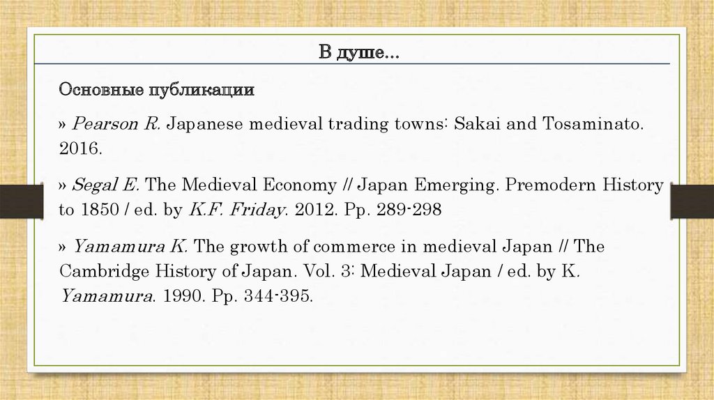 » Pearson R. Japanese medieval trading towns: Sakai and Tosaminato.