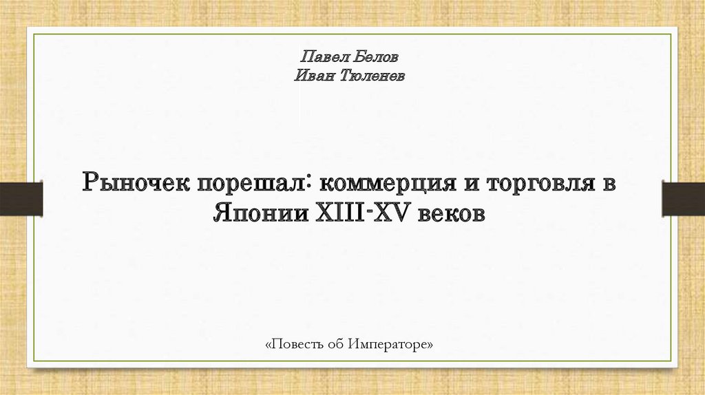 Рыночек порешал: коммерция и торговля в Японии XIII-XIV веков