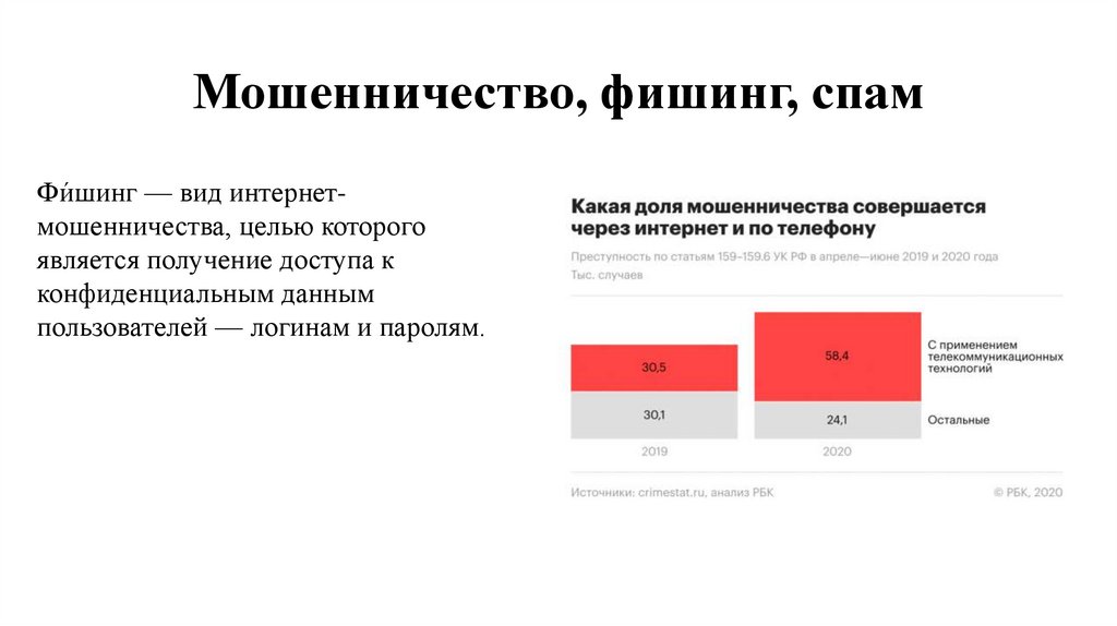 Мошенничество, фишинг, спамФи́шинг — вид интернетмошенничества, целью которого