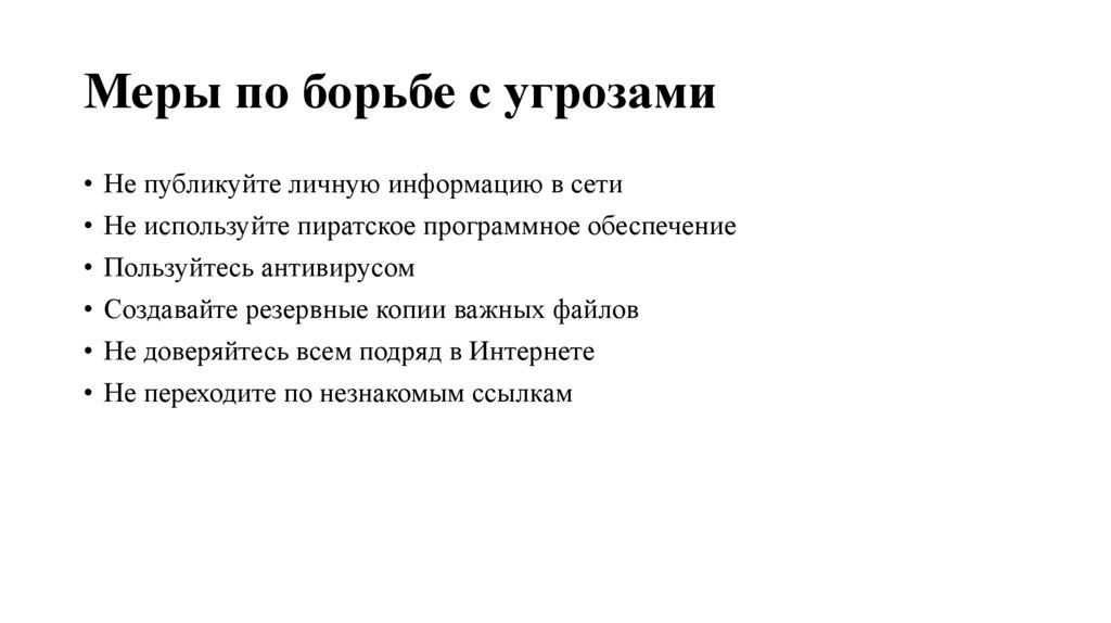 Меры по борьбе с угрозамиНе публикуйте личную информацию в сети