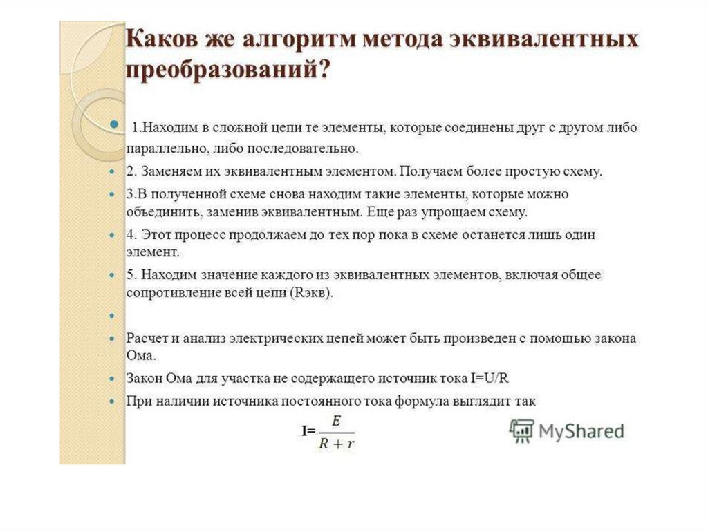 Расчет электрических цепей постоянного тока методом эквивалентных преобразований