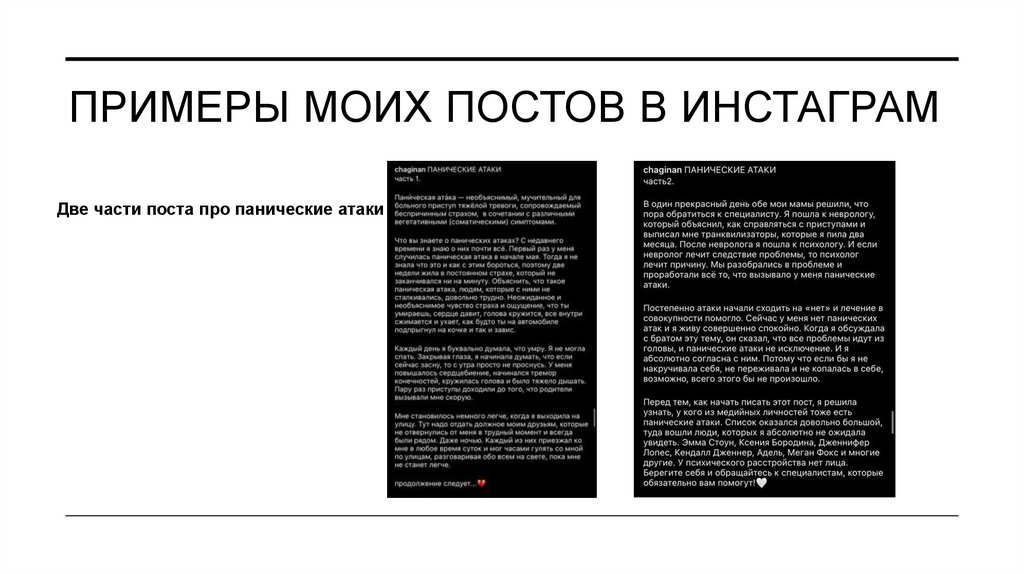ПРИМЕРЫ МОИХ ПОСТОВ В ИНСТАГРАМДве части поста про панические атаки