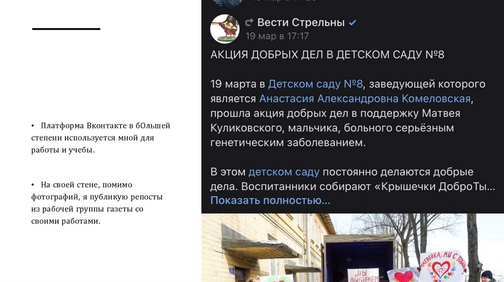 • Платформа Вконтакте в бОльшейстепени используется мной для