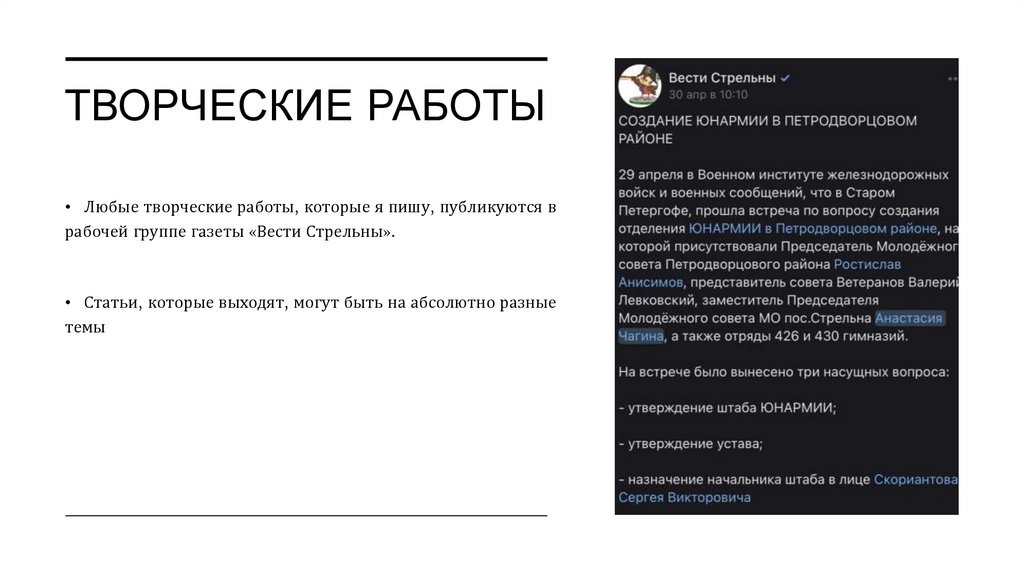 ТВОРЧЕСКИЕ РАБОТЫ• Любые творческие работы, которые я пишу, публикуются в