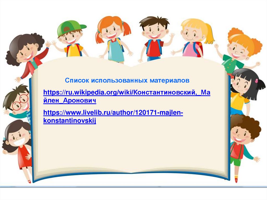 Список использованных материаловhttps://ru.wikipedia.org/wiki/Константиновский,_Ма