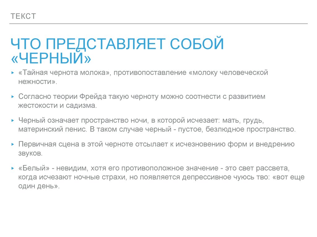 ▸ Согласно теории Фрейда такую черноту можно соотнести с развитием