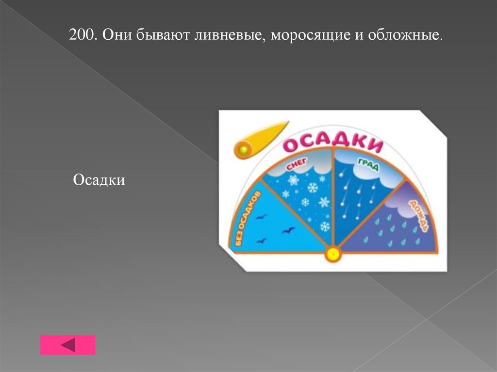 200. Они бывают ливневые, моросящие и обложные.Осадки