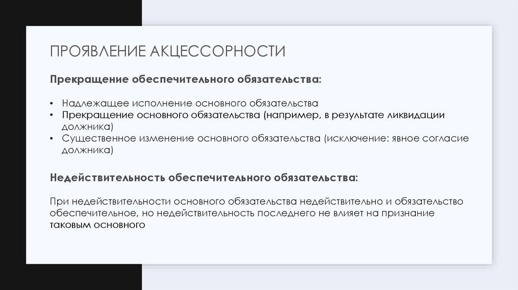 ПРОЯВЛЕНИЕ АКЦЕССОРНОСТИПрекращение обеспечительного обязательства: