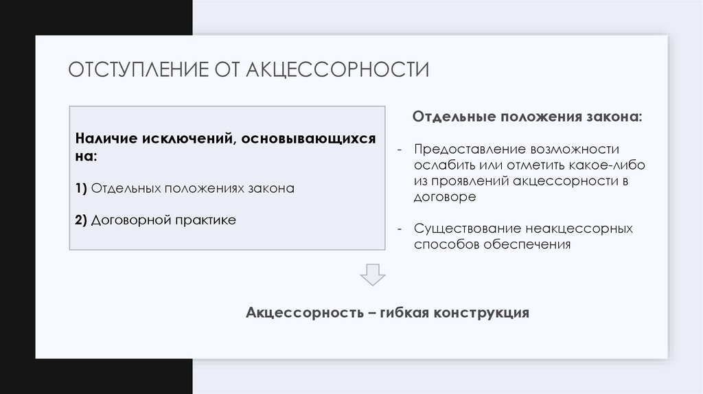 ОТСТУПЛЕНИЕ ОТ АКЦЕССОРНОСТИОтдельные положения закона: