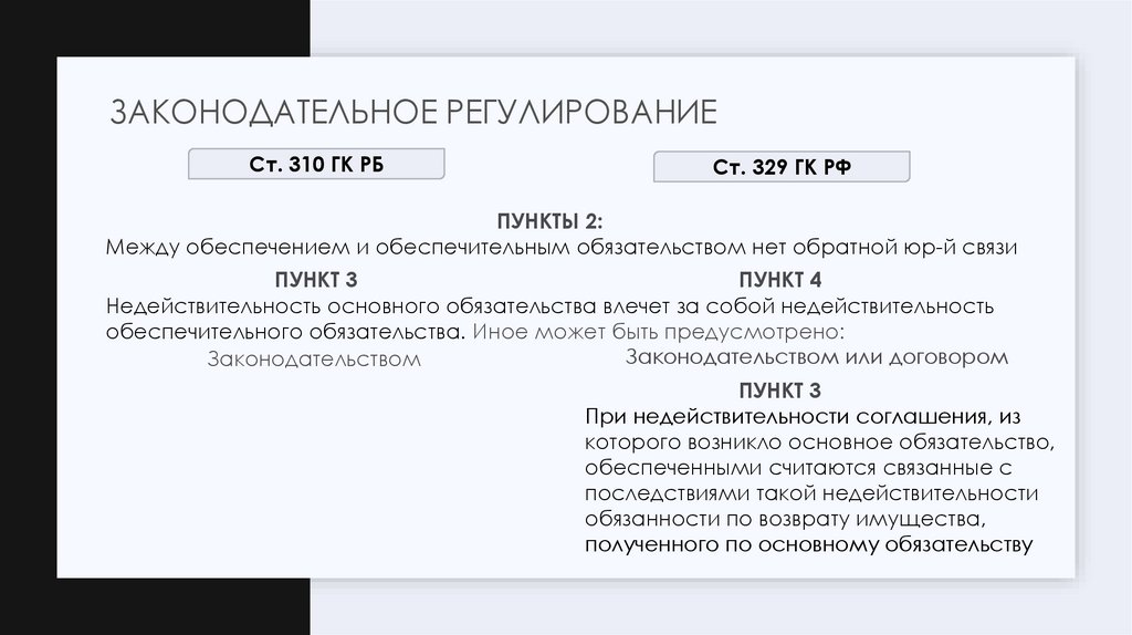 ЗАКОНОДАТЕЛЬНОЕ РЕГУЛИРОВАНИЕСт. 310 ГК РБ