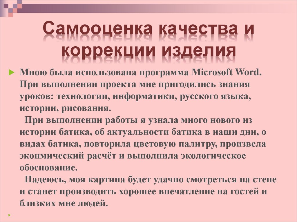Самооценка качества икоррекции изделия