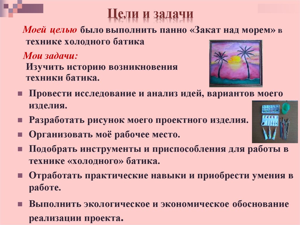Цели и задачиМоей целью было выполнить панно «Закат над морем» в